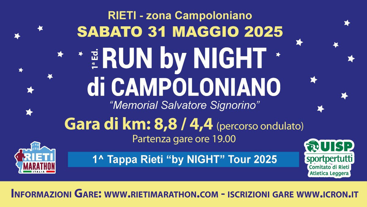 1 Tappa Run by Night Tour 2025 - Rieti Campoloniano. Sabato 31 maggio
